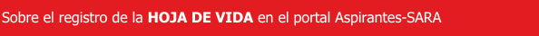 - Los aspirantes que se encuentran registrados en el portal Empleados-SARA deberán, necesariamente, registrarse en el portal Aspirantes-SARA ya que estos portales son independientes y no comparten información entre hojas de vida.