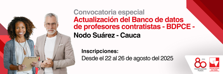 La Vicerrectoría Académica de la Universidad del Valle invita a participar de la convocatoria para actualizar su Banco de Datos de Profesores Contratistas Elegibles (BDPCE).