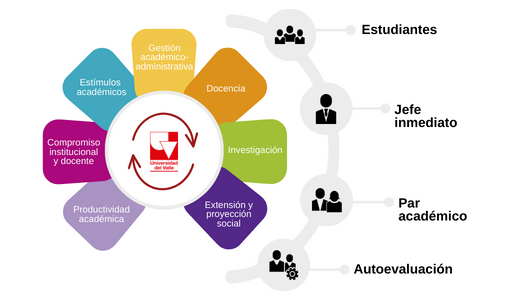 | En la medida que en el ejercicio profesoral confluyen múltiples actividades y por tanto son heterogéneos los Planes de Trabajo de los profesores, la Universidad ha definido en diferentes normativas las directrices para realizar la evaluación del desempeño del profesor en todas las actividades que realiza. | |