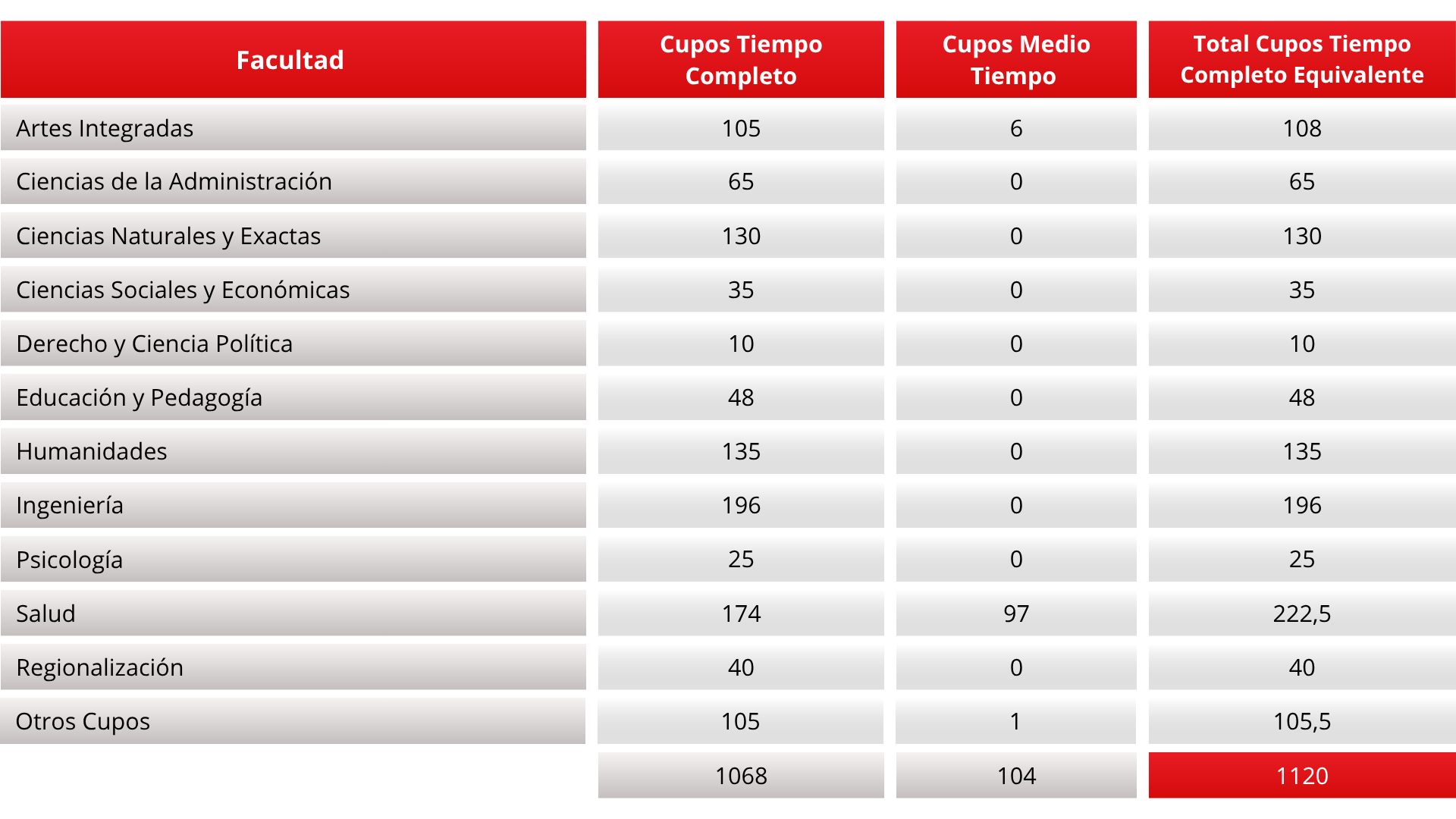 En el evento de que alguna Facultad / Regionalización, previa recomendación de la(s) Unidad(es) Académica(s)  involucrada(s), solicite(n) la unificación de cupos  de  medio  tiempo  en  cupos de tiempo completo,  la partición de cupos de tiempo completo en cupos de medio tiempo, mediante Resolución Rectoral se podrá autorizar esta modificación parcial de la planta docente.